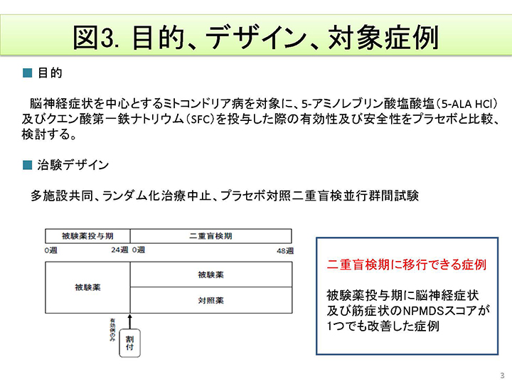 SPP-004(5-ALA+クエン酸第一鉄)治験は第Ⅰ相、第II相試験が無事終了し、昨年6月より第III相試験が進行中です。治験である性質上詳しくは申し上げられませんが、現在8病院で54名の患者さんを対象に第III相試験が進行中で、今のところ大きな副作用もなく全ての患者さんが脱落されずに経過しており、予定通りに行けばあと1年余りで終了の予定です。