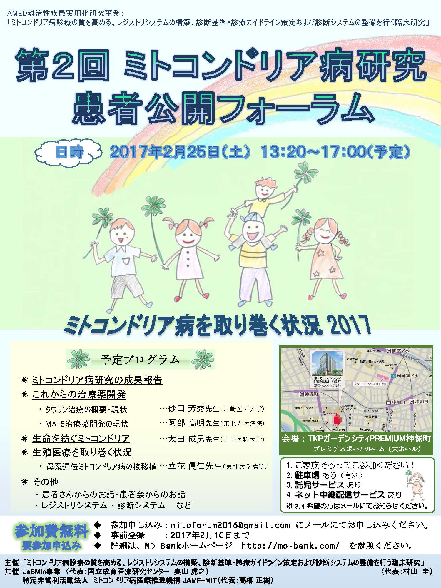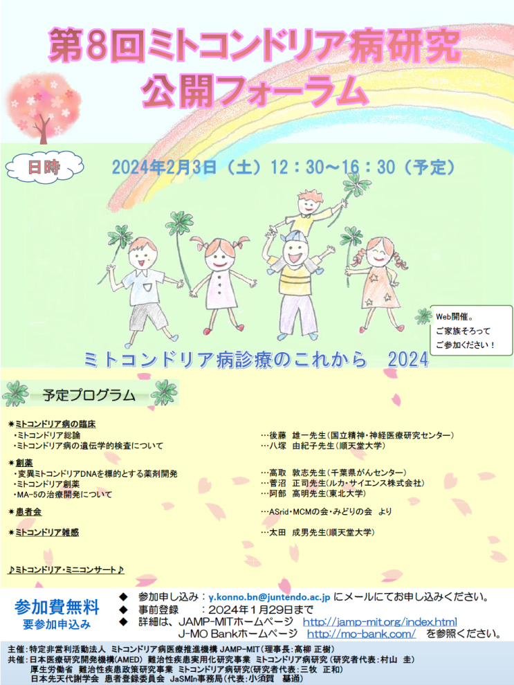 お待たせいたしました。第9回ミトコンドリア病研究公開フォーラムの詳細が確定いたしました。参加者を募集いたします。