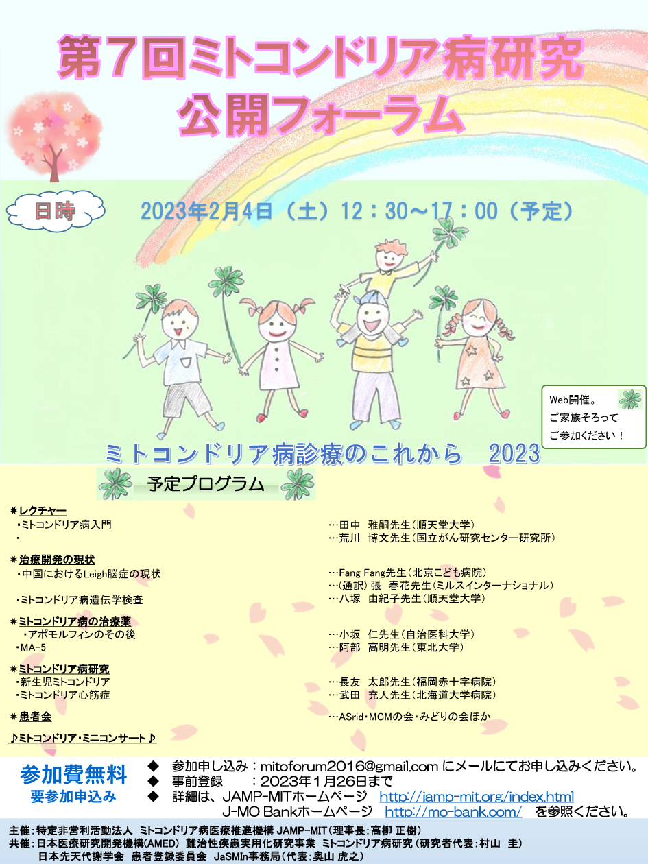 | 第9回ミトコンドリア病研究公開フォーラム(Web開催・概要) | |