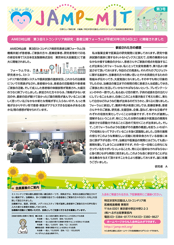 特定非営利活動法人ミトコンドリア病医療推進機構〒290-0143千葉県市原市ちはら台西四丁目7番地18